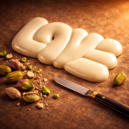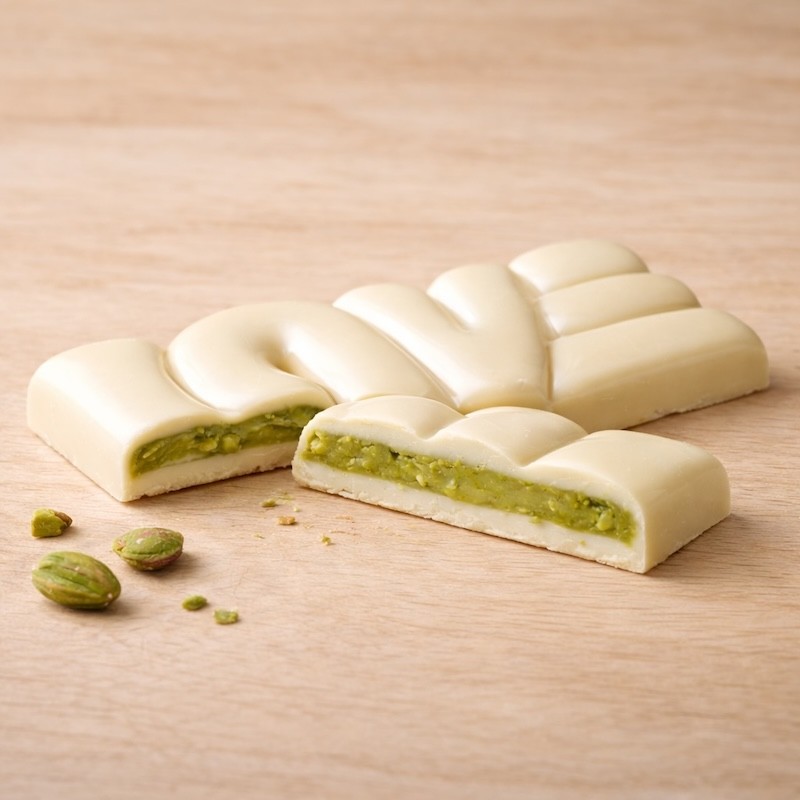 Questa tavoletta esprime un’idea di lusso essenziale, fatto di equilibrio e materia prima. Un guscio di cioccolato bianco finissimo, dalla tonalità avorio e dalla superficie vellutata, racchiude un cuore generoso di cremino al pistacchio intenso e naturale. Alla rottura il cioccolato si spezza con precisione, rivelando una farcitura morbida, compatta, dal colore verde/marrone autentico. In degustazione il cioccolato bianco avvolge il palato con note delicate di latte e burro, lasciando spazio alla profondità aromatica del pistacchio, leggermente tostato e mai stucchevole. Il contrasto è armonico, pulito, persistente. Una tavoletta pensata per chi cerca gusto vero, artigianalità e raffinatezza senza eccessi. Un piacere consapevole, elegante, che racconta identità e cura in ogni dettaglio.