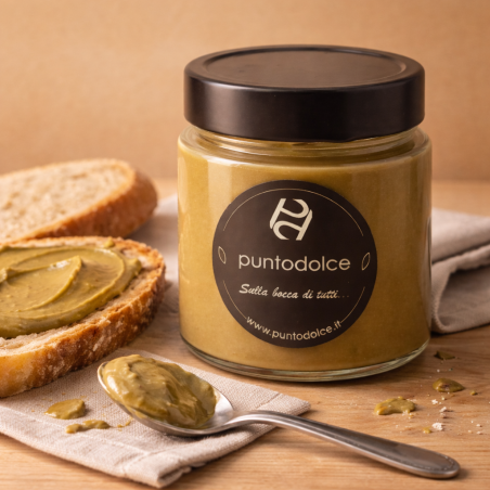 In bocca è setosa, piena, appagante. Si apre lentamente, poi esplode in una persistenza lunga e magnetica, dove la dolcezza naturale del pistacchio incontra una sapidità elegante, quasi irresistibile. È una crema che seduce con intelligenza, che sorprende senza eccessi.